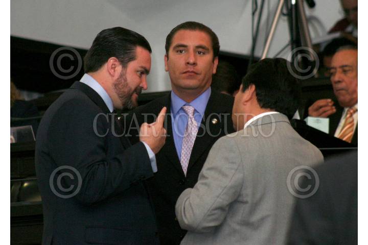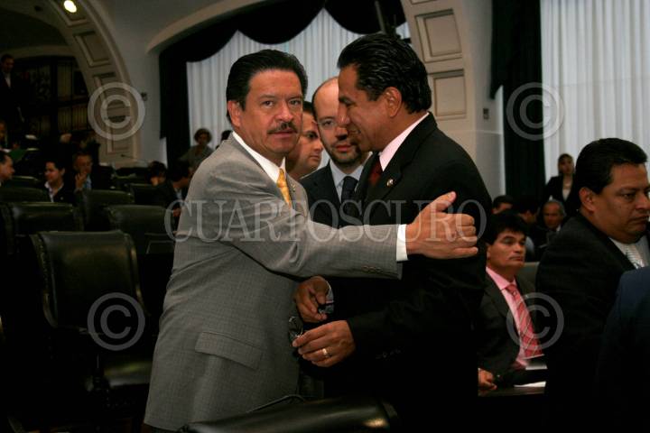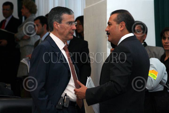 MÉXICO, D.F., 11ABRIL2007.- El senador panista José González Morfin y el presidente de la mesa directiva de la Cámara de Senadores, Manlio Fabio Beltrones, durante la sesión en que se presentó en el pleno una iniciativa de ley que permitiría a los enfermos terminales solicitar el fin del tratamiento que lo mantiene con vida. FOTO: ISAAC ESQUIVEL/CUARTOSCURO.COM