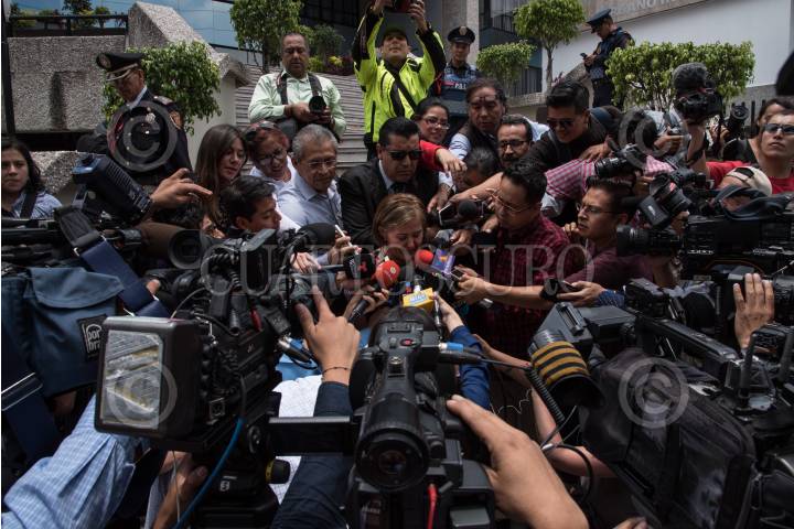 CIUDAD DE MÉXICO, 02MAY02017.- Santiago Nieto Castillo, titular de la Fiscalía Especializada para la Atención de Delitos Electorales (Fepade), ofreció una conferencia de prensa en las escaleras de la institución a su cargo para informar que habia sido citada la diputada local del partido Morena, Eva Cadena Sandoval de Xalapa, Veracruz, por los video-escandalos en los que se ha visto involucrada recibiendo dinero de manera ílicita. Más tarde, pasadas las 11:00 horas, un trabajador del área de comunicación salió de las instalaciones para entregar un comunicado a los medios que se encontraban presentes esperando la llegada de la diputada. El comunicado informaba que a las 10:30 horas se venció el plazo para la cita de Cadena Sandoval y procederán a hacerle efecto apercibimiento para su presentaciñon forzosa. FOTO: TERCERO DÍAZ /CUARTOSCURO.COM