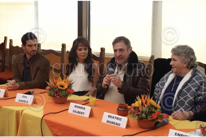 Sergio Lozano, Eva Daniela, Morris Gilbert y Beatriz Moreno durante la conferencia de prensa de la obra “Los Guajolotes Salvajes”, en un restaurante al sur de la Ciudad de México.