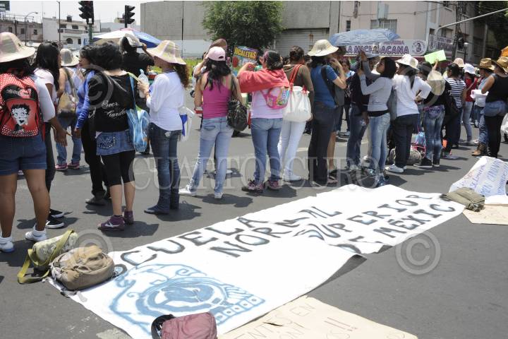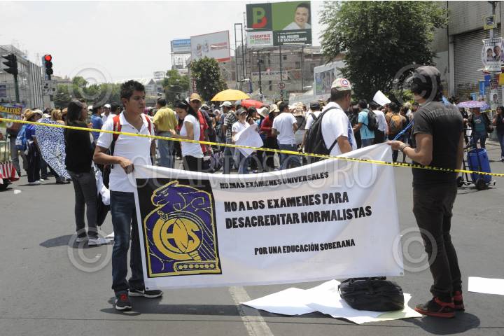 MÉXICO, D.F., 01JUNIO2012.- Maestros de la Escuela Normal bloquearon la avenida Ribera de San Cosme a la altura de Fresno, entre las exigencias estaban que les regresarán sus plazas y su oposición a la aplicación del examen universal. FOTO: LUIS CARBAYO /CUARTOSCURO.COM
