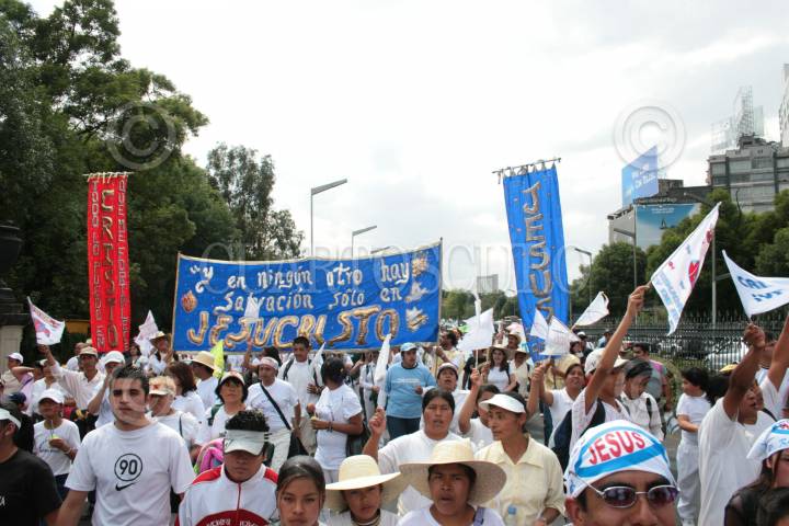 MÉXICO D.F. 07ABRIL2007.-Integrantes de diversas congregaciones Evangélicas, realizaron una caminata en avenida Paseo de la Reforma que comenzo del Museo de Antropología e Historia al Zócalo capitalino. FOTO: JEFTÉ ARGUELLO/CUARTOSCURO.COM
