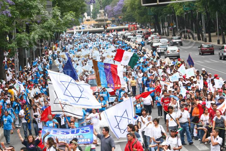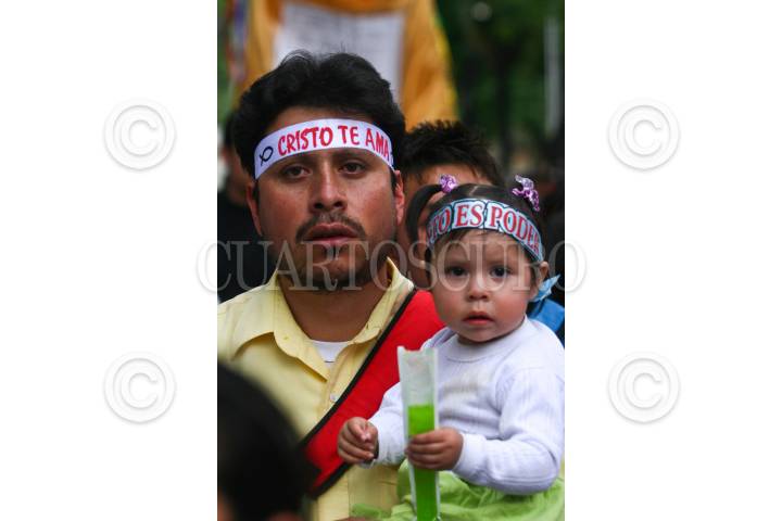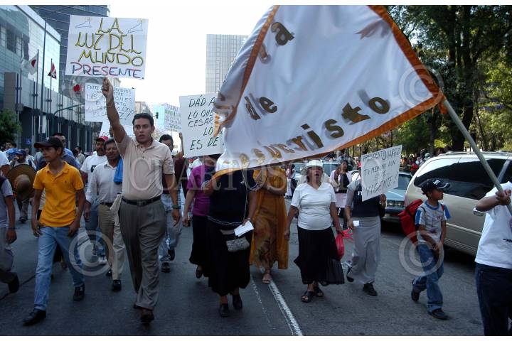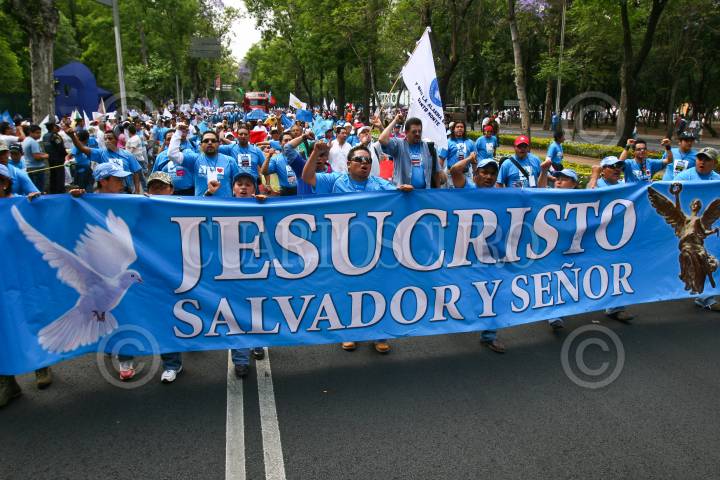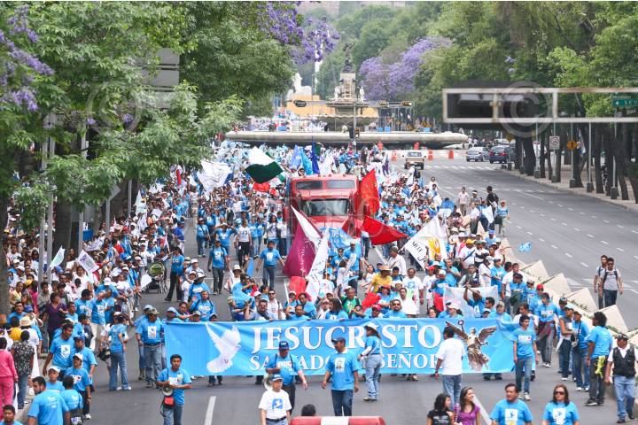 MÉXICO, D.F., 03ABRIL2010.- Cientos de evangélicos participaron en la "Marcha de gloria para JesuCristo", la cual se realizó desde el Circuito de Gandhi, sobre avenida Reforma, y hasta el Zócalo de la ciudad de México. FOTO: ISAAC ESQUIVEL/CUARTOSCURO.COM