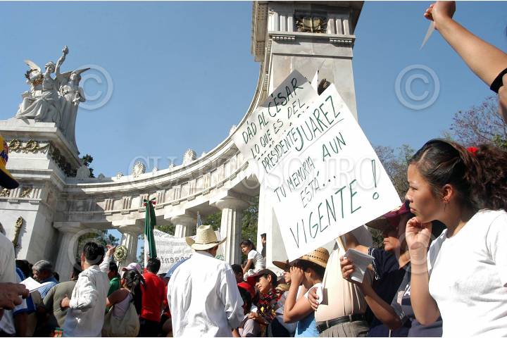 MEXICO D.F. 21MARZO2005.- Cientos de integrantes de la iglesia evangelica realizaron una marcha en conmemoracion del natalicio de Benito Juarez. Partieron del monumento a la revolución al hemiciclo a Juarez. FOTO: Germàn Romero/CUARTOSCURO.COM