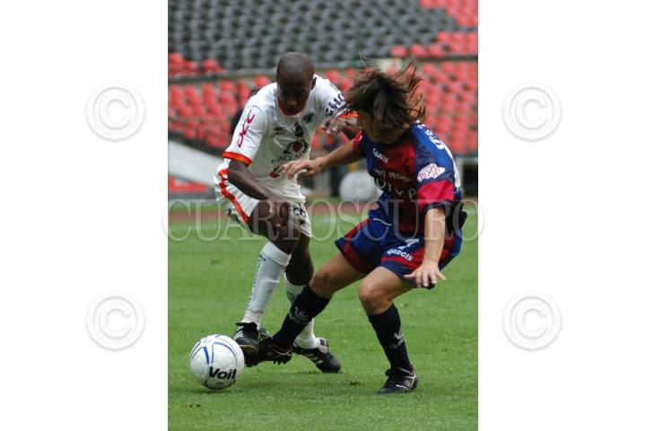 MÉXICO, D.F. 29OCTUBRE2005.- Everaldo Barbosa (Jaguares)diisputa un balón con Daniel Alcántar (Atlante) en el partido de la jornada 14 del torneo de apertura 2005 en el que Atlante y Chiapas empataron a un gol en el Estadio Azteca. FOTO: Iván Stephens/CUARTOSCURO.COM