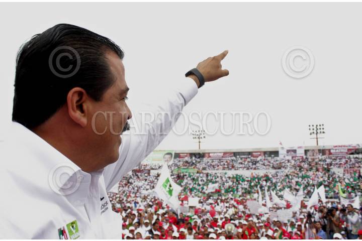 OAXACA, OAXACA 30JUNIO2010.- El candidato a Gobernador del Estado Eviel Perez Magaña en compañía de la Presidenta Nacional del Partido Revolucionario Institucional (PRI) Beatriz Paredes,realizo su cierre de campaña en el estadio de fútbol Benito Juarez. FOTO: ADRIANA ALVAREZ/CUARTOSCURO.COM