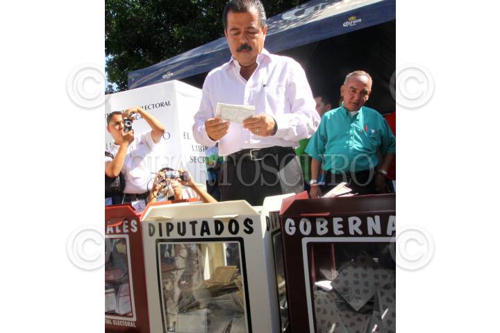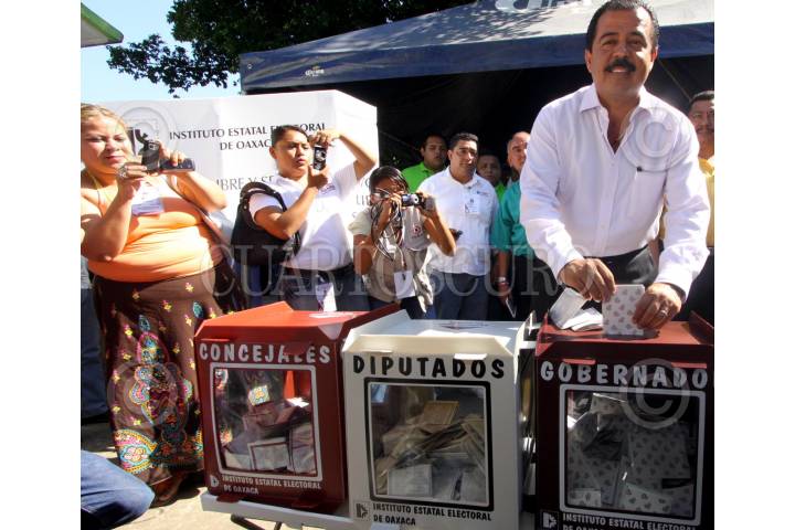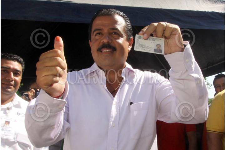 TUXTEPEC, OAXACA, 04JULIO2010.- Eviel Pérez Magaña, candidato de la alianza PRI PEVEM a la gubernatura de la entidad, en compañía de su esposa e hija, acudió a emitir su voto esta mañana. FOTO: CARLOS SALINAS/ESPECIAL/CUARTOSCURO.COM