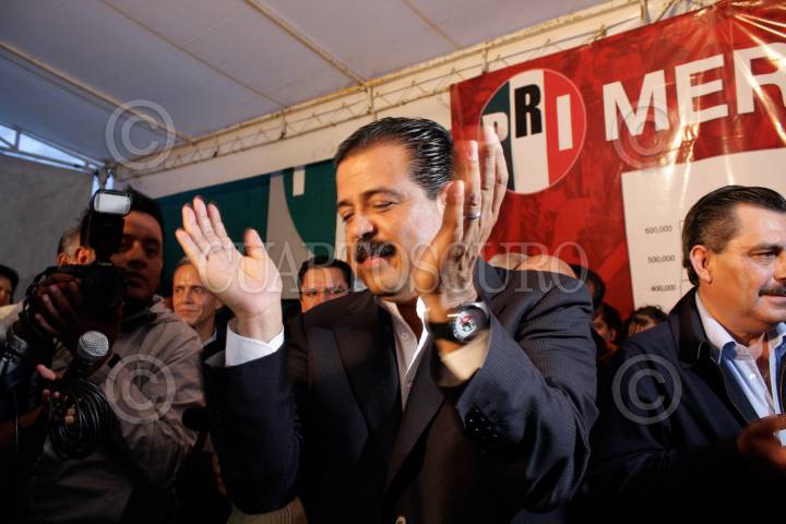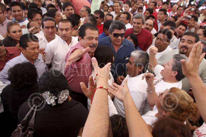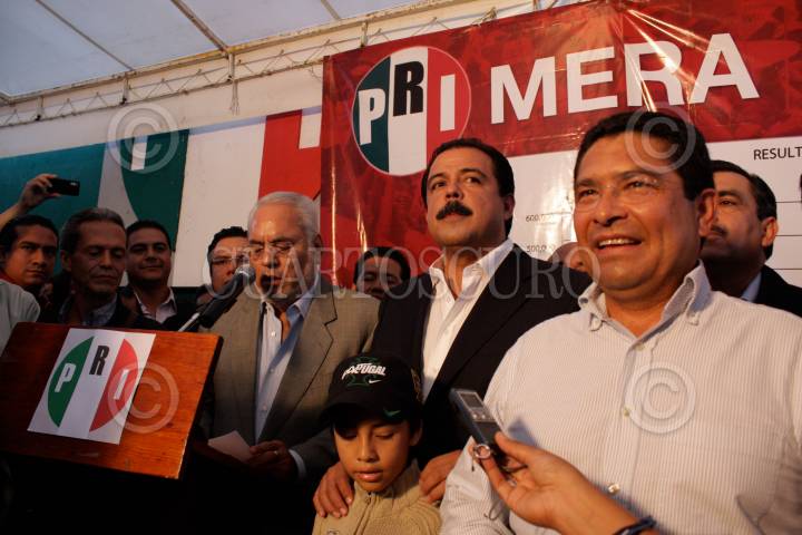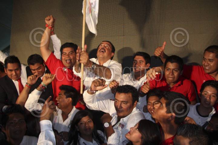 OAXACA, OAXACA, 15JULIO2010.- El ex candidato a la gubernatura del estado de Oaxaca, Eviel Pérez Magaña, tomó protesta como dirigente estatal del Partido Revolucionario Institucional (PRI), en compañía del Senador Adolfo Toledo Infanzón ahora dirigente de la Confederacion Nacional Campesina, y el Senador Carlos Jimenez Macias. FOTO: ADRIANA ALVAREZ/CUARTOSCURO.COM
