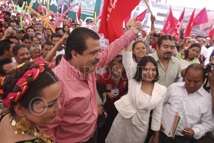 OAXACA, OAXACA, 21ENERO2012.- Eviel Pérez Magaña, diputado Federal por el PRI se registró como precandidato al Senado por el estado de Oaxaca. El excandidato al gobierno del Estado en 2010 se registró junto con su compañera de bancada, Sofía Castro Ríos. Pérez Magaña renunció la noche de este viernes a la presidencia Estatal del tricolor para así registrarse por una fórmula al senado. También se registró el legisldor el local, Martín Vásquez Villanueva. FOTO: ARTURO PEREZ ALFONSO/CUARTOSCURO.COM
