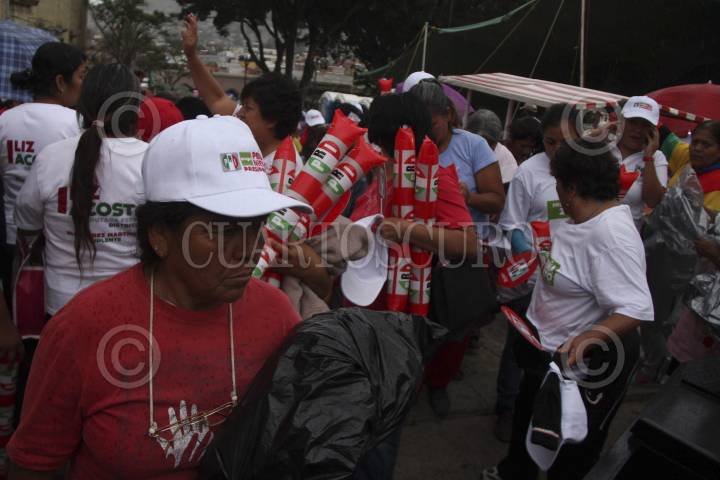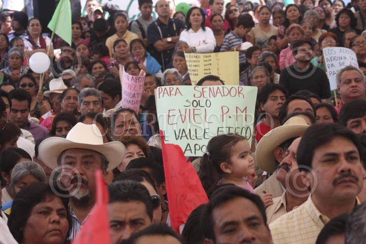 OAXACA OAXACA, 27JUNIO2012.- Este miércoles cerró campaña en la plaza de la danza el candidato al senado a la primera fórmula, Eviel Pérez Magaña y a la segunda fórmula, Sofía Castro y Liz Acosta. Al lugar asistieron alrededor de 2 mil personas. FOTO: JORGE A. PEREZ ALFONSO /CUARTOSCURO.COM