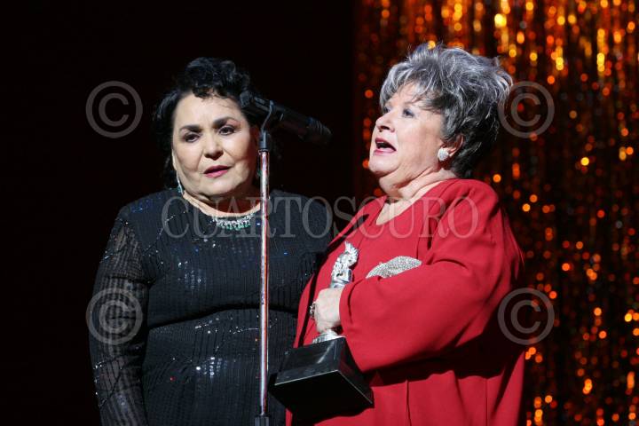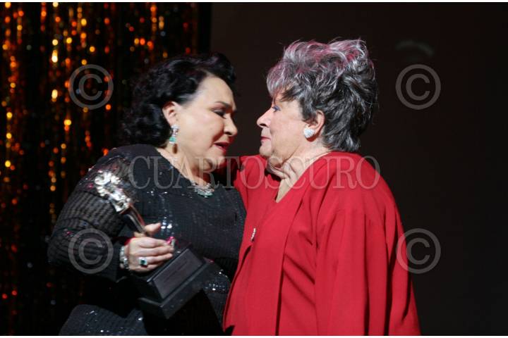 MEXICO, D.F. 07MARZO2007.- Evita Muñoz "Chachita" recibió de manos de Carmen Salinas una presea por sus 66 años de trayectoria artística en la XXXVII entrega de las Diosas de plata. FOTO: NELLY SALAS/CUARTOSCURO.COM