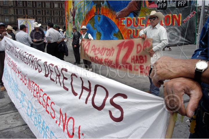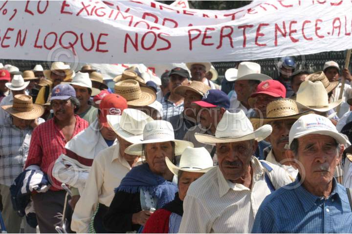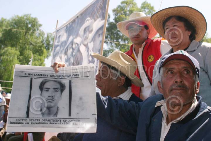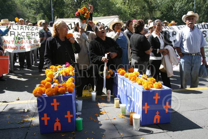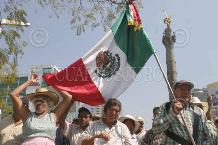 México, D.F., 09FEBRERO2004.- Ex-braceros procedentes de varios estados del país, marcharon del Angel de la Independencia a los Pinos, para exigir que les sea devuelto el dinero que les fue retenido por el gobierno federal, en el período que se contrataron con braceros para ir a trabajar a los EE. UU. FOTO: Moisés Pablo/CUARTOSCURO.COM