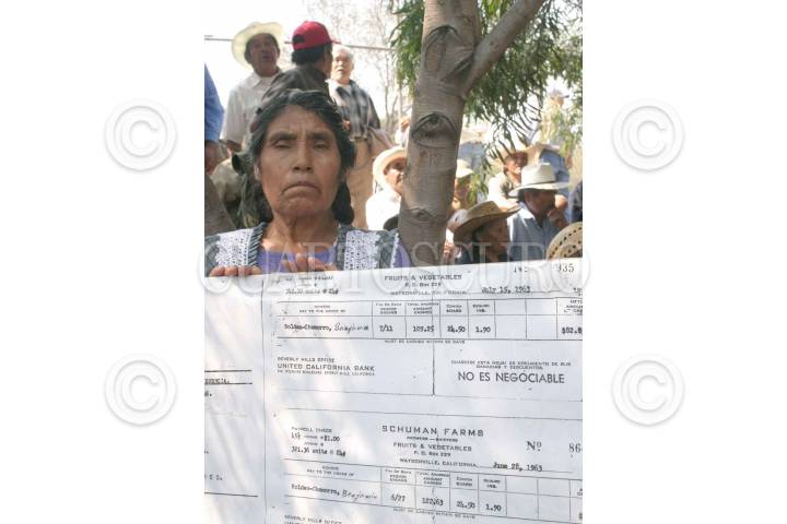 México, D.F., 09FEBRERO2004.- La viuda de un ex-bracero muestra el cheque, donde muestra la cantidad que le era retenido a su esposo en el período que el se contrató como bracero, para ir a trabajar a los EE. UU., supuestamente los fondos iban a parar a una caja de ahorros, que les serviría como un apoyo económico cuando ellos regresarán a México. FOTO: Moisés Pablo/CUARTOSCURO.COM