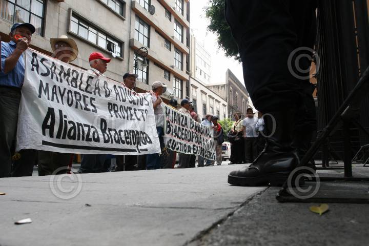 MÉXICO D.F. 05JUNIO2008.-Exbraceros acudieron a las inmediaciones del Senado de la República, a protestar por la falta de pago de una indemnización prometido por el gobierno federal. FOTO: GUILLERMO PEREA/CUARTOSCURO.COM