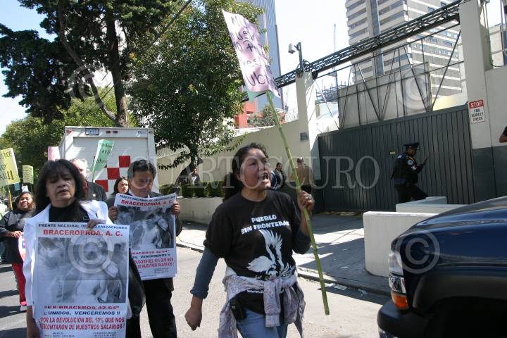 MÉXICO D.F., 20ENERO2010.- Exbraceros, de diversas organizaciones del país, apoyados por integrantes del Sindicato Mexicano de Electricistas (SME) protestaron a las afueras de la embajada de los Estados Unidos, una reforma migratoria. FOTO: GUILLERMO PEREA/CUARTOSCURO.COM