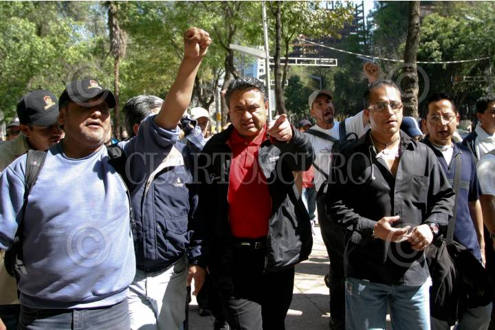 MÉXICO D.F., 20ENERO2010.- Exbraceros, de diversas organizaciones del país, apoyados por integrantes del Sindicato Mexicano de Electricistas (SME) protestaron a las afueras de la embajada de los Estados Unidos, una reforma migratoria. Martín Esparza, dirigente del SME, a su llegada al mitin realizado a las afueras de esta embajada. FOTO: GUILLERMO PEREA/CUARTOSCURO.COM
