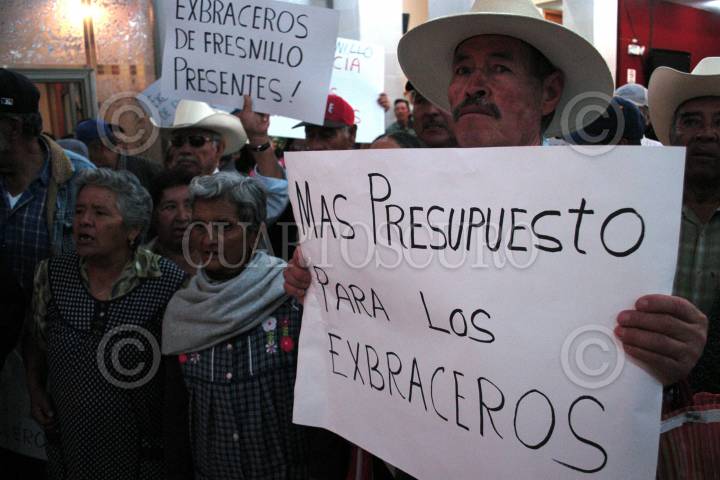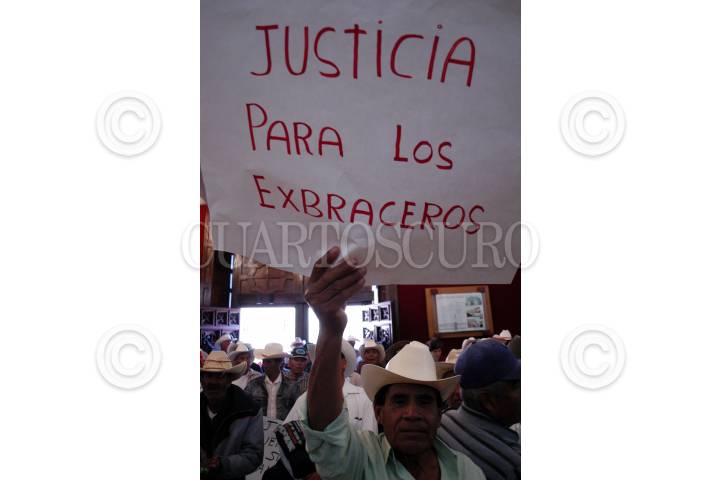 ZACATECAS, ZACATECAS, 29SEPTIEMBRE2010.- Ex braceros integrantes de la organización BraceroProa realizaron una protesta en las instalaciones del congreso local para exigir que intercedan por ellos frente al Gobierno Federal, para pedir que ya se les pague los 30 mil pesos de apoyo a exbraceros. Además, pidieron que se reabran la oficinas receptoras y se integre a los ex braceros que perdieron sus micas y así a estas personas se les reconozcan sus derechos. FOTO: ADOLFO VLADIMIR VALTIERRA/CUARTOSCURO.COM