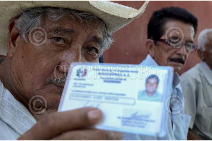 COYUCA DE BENITEZ, GUERRERO, 12SEPTIEMBRE2014.- Integrantes de la Coordinador Binacional de la Alianza Braceroproa denunciaron que ha dos años de la administración del gobierno federal que encabeza Enrique Peña Nieto, 6 mil guerrerense beneficiarios del fondo de ahorro ex braceros no han cobrado el pago social que accede a 38 mil pesos mensuales. Se anunció que hace falta que cobren 6 mil guerrerenses y se indicó que la única esperanza es que los diputados, locales y federales insistan a Peña Nieto el otorgamiento del recurso que accede a cerca de mil 523 millones de pesos. FOTO: BERNANDINO HERNÁNDEZ /CUARTOSCURO.COM