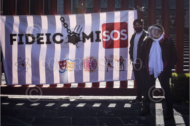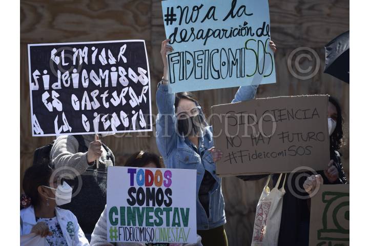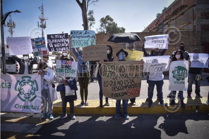 Investigadores del Centro de Investigación y Docencia Económicas (CIDE), y del CINVESTAV se manifestaron al exterior de la Cámara de Diputados, para solicitar a los legisladores cumplan sus demandas en relación a la desaparición de los 109 fideicomisos que se prevé se ponga a votación durante la sesión ordinaria de este martes.
