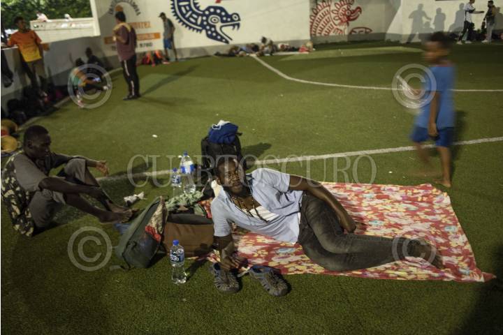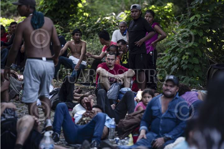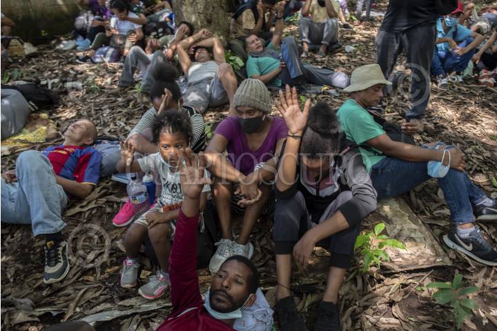 Continúa el éxodo de migrantes haitianos a través del río Bravo, tras lograr cruzar se instalan en un campamento que acondicionaron debajo de un puente de lado de Texas, en donde sos resguardados por elementos de la Border Patrol.