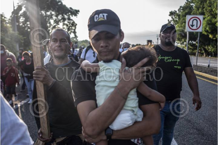 Después de pasar la noche en el parque central del poblado Álvaro Obregón, los alrededor de tres mil migrantes que partieron en caravana el día de ayer con rumbo a la Ciudad de México, retomaron su camino.
