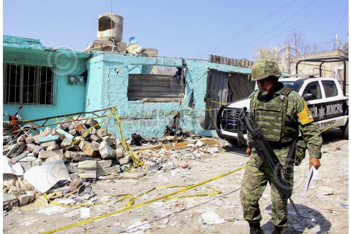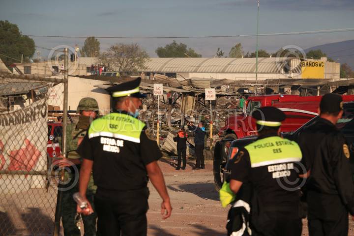 TULTEPEC, ESTADO DE MÉXICO, 04MARZO2017.- Cuatro personas murieron tras una explosión en un taller donde se elaboraban juegos pirotécnicos en un domicilio de la colonia La Piedad. Ejército mexicano, de la Policía Federal y elementos del Heroico Cuerpo de Bomberos arribaron al lugar de los hechos para los trabajos correspondientes. FOTO: ARMANDO MONROY /CUARTOSCURO.COM
