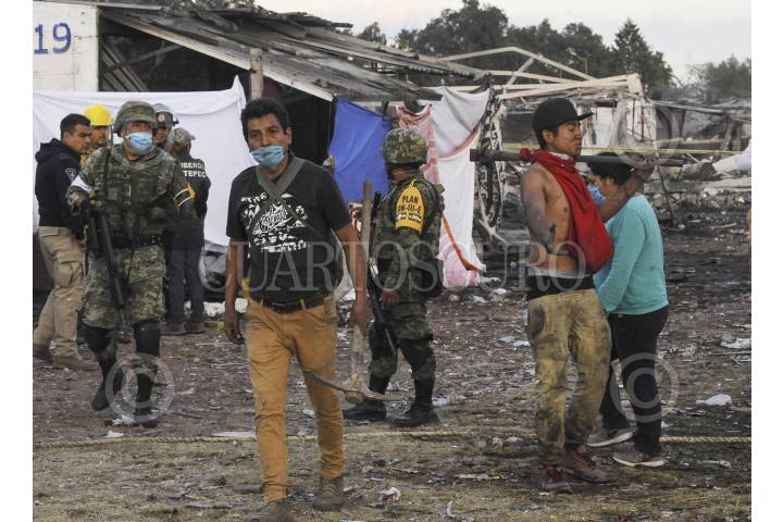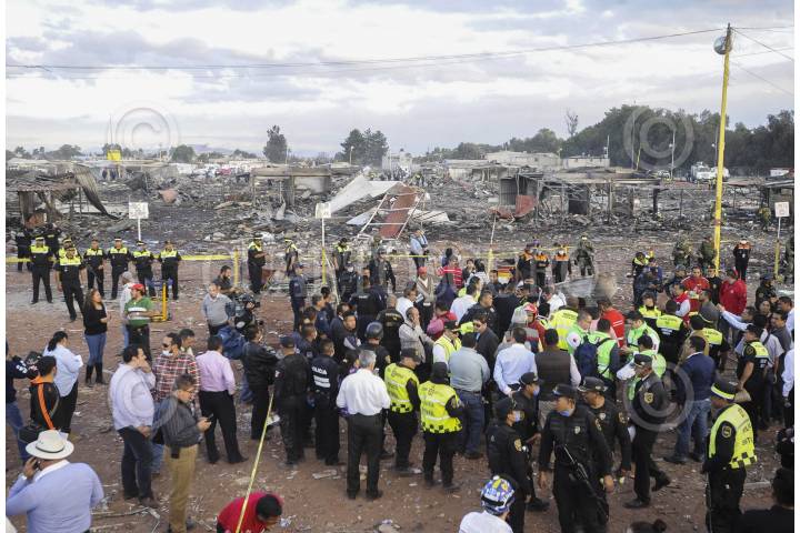 TULTEPEC, ESTADO DE MÉXICO, 20DICIEMBRE2016.- Más de 20 personas perdieron la vida y decenas de heridos fue el saldo de una explosión del mercado de cohetes, San Pablito en Tultepec. Servicios de emergencia de todas las corporaciones trabajan para auxiliar a los damnificados. FOTO: ARMANDO MONROY /CUARTOSCURO.COM