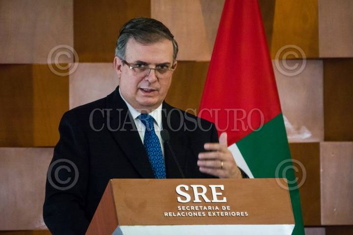 Marcelo Ebrard durante la presentación del Pabellón de México para la expo Dubai 2020 en la Secretaría de Relaciones Exteriores (SRE).