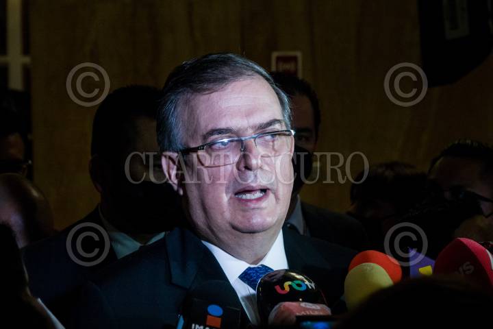 Marcelo Ebrard al término de la presentación del Pabellón de México para la expo Dubai 2020 en la Secretaría de Relaciones Exteriores (SRE).