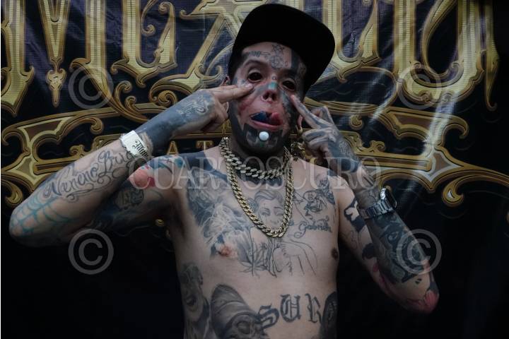 El francés Anthony Loffredo mejor conocido por The Black Alien asistió a la Expo Tattooarte México 2021 en la Sala de Armas de Ciudad Deportiva, en la que se muestra el trabajo de diversos artistas nacionales e internacionales del tatuaje.