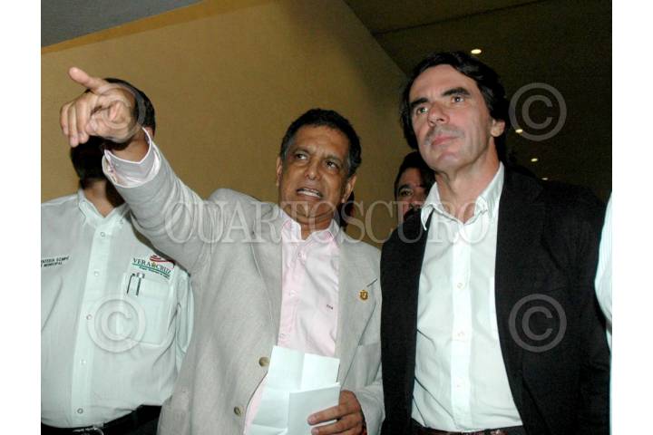 BOCA DEL RIO, VERACRUZ., 11ABRIL2008.- Concluyeron los trabajos de la "Expo Salud Veracruz 2008" organizada por el gobierno del estado.En la imagen Fidel Herrera Beltran, gobernador de la entidad y el expresidente del gobierno Español, Jose Maria Aznar. FOTO: JOSE CANDELARIO/CUARTOSCURO.COM