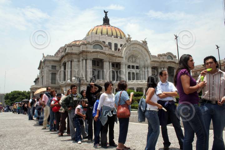 MÉXICO, D.F., 08JULIO2007.- Largas filas se forman en la explanada de Bellas Artes para ingresar a la exposición "Frida Kahlo. 1907-2007. Homenaje Nacional" FOTO: ISAAC ESQUIVEL/CUARTOSCURO