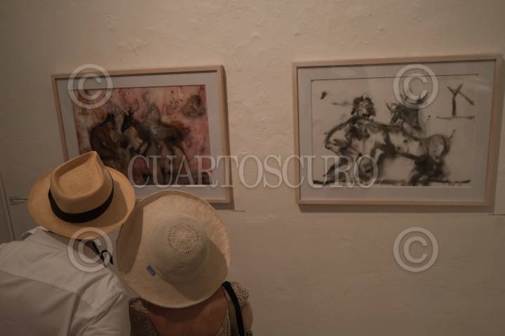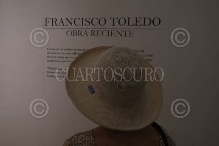 OAXACA, OAXACA, 23FEBRERO2019.- Anoche, decenas de personas acudieron a la inauguración de la exposición “Obra Reciente”, del artista plástico Francisco Toledo, en la Bodega Quetzalli; la muestra está conformada por un centenar de obras del oaxaqueño realizadas en los últimos dos años, en la que se incluyen piezas sobre recuerdos familiares del artista. FOTO: PEDRO VALTIERRA /CUARTOSCURO.COM
