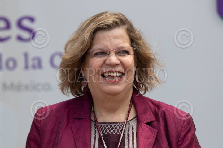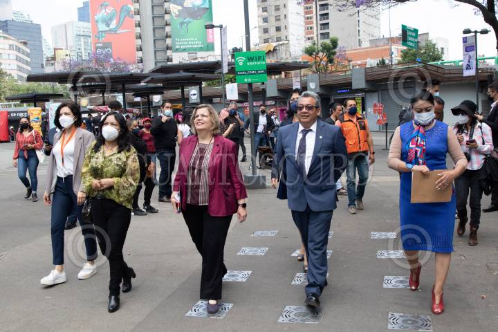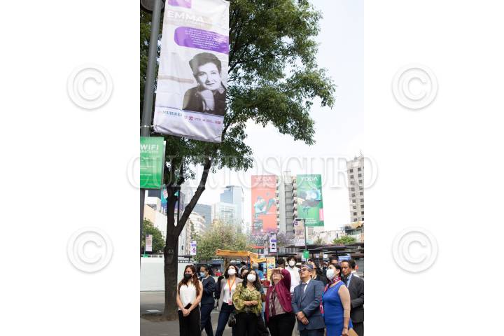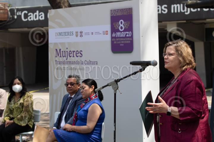 Nadine Gasman, presidenta de Inmujeres, encabezó la inauguración de la exposición "Mujeres Transformando la Cultura", en la Glorieta de los Insurgentes.