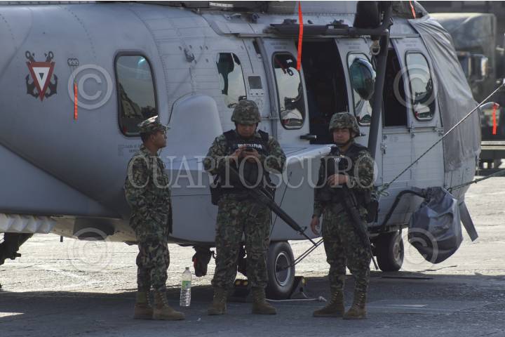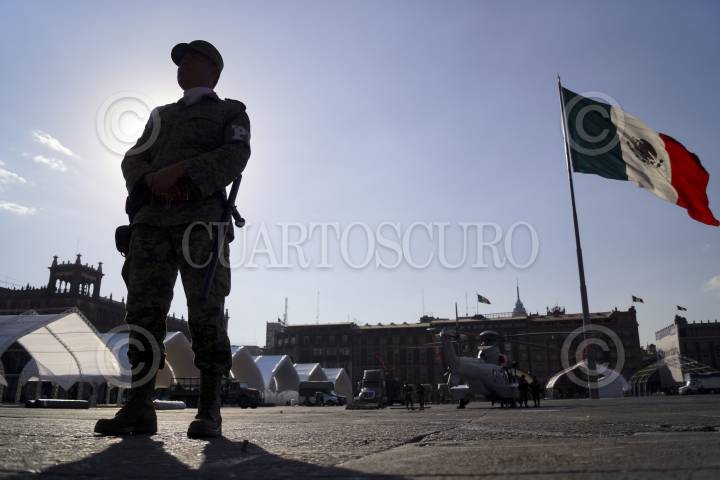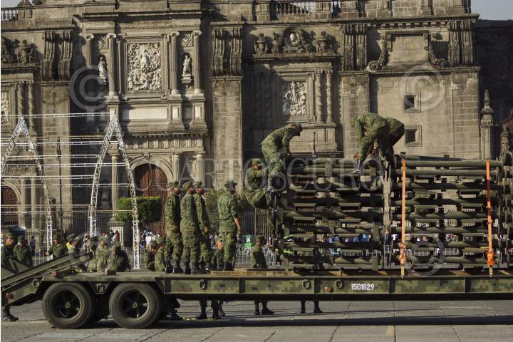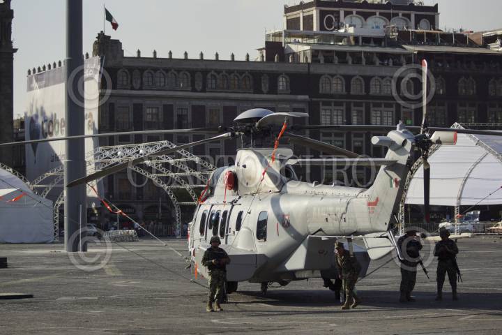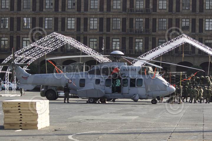 MÉXICO, D.F., 11FERBERO2013.- Elementos del Ejército Mexicano (SEDENA) y de la Marina Armada de México (SEMAR), iniciaron la instalación de la exposición "Ejército, Fuerza Aérea y Armada, pasión por servir a México", cuyo montaje podrá apreciarse el próximo viernes en el Zócalo capitalino. FOTO: ADOLFO VALTIERRA /CUARTOSCURO.COM