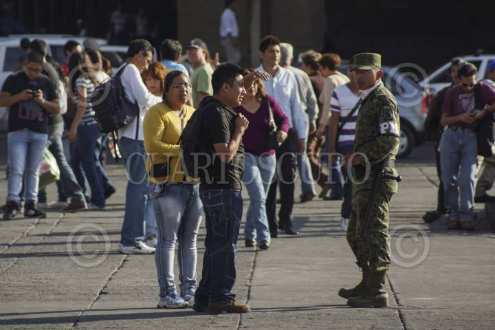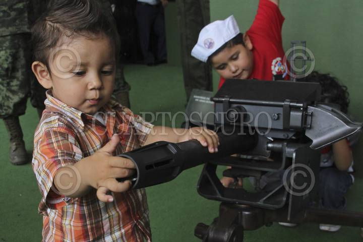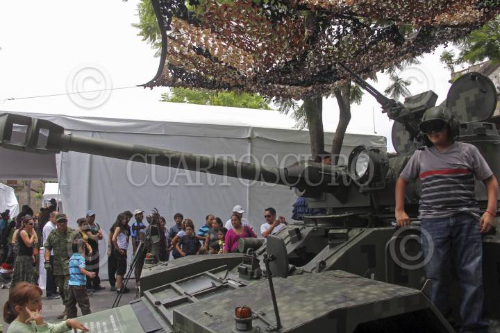 MÉXICO, D.F., 15FEBRERO2013.- Cientos de personas pudieron observar, tocar, subirse y tomarse fotografías, en los diferentes vehículos, tanques, con las diversas armas, aviones y helicópteros que la Secretaria de Marina y la Secretaria de la Defensa Nacional mantiene en el Zócalo capitalino, como parte de la exposición "Fuerzas armadas... pasión por servir a México", como parte de los festejos del 100 aniversario de creación del Ejército Mexicano. FOTO: ADOLFO VALTIERRA /CUARTOSCURO.COM