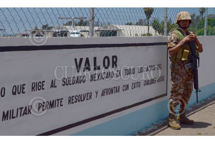 ENSENADA, BAJA CALIFORNIA, 31MAYO2015.- Un marino con uniforme tipo "cargo" permanece en custodia frente a una leyenda que destaca la palabra "Valor". La Marina Mexicana se nacionalizó el 01 de junio de 1917, cuando se le dio cumplimiento al artículo 32 constitucional, que señalaba que "para pertenecer a la Marina nacional de guerra, y desempeñar cualquier cargo se requiere se mexicano por nacimiento". Mañana se conmemora el Día de la Marina en México. FOTO: MARÍA JOSÉ MARTÍNEZ /CUARTOSCURO.COM