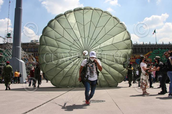 URUAPAN, MICHOACÁN. 15FEBRERO2024. La Exposición Militar “La Gran Fuerza de México” permanecerá durante todo el mes de febrero en el municipio de Uruapan. Las y los asistentes podrán visitar los stands de paracaidismo militar, educación militar y artillería dentro de la exposición que busca mostrar los diferentes destacamentos que integran al Ejército y la Fuerza Aérea Mexicana. Además, de tener como finalidad que la población conozca los programas sociales, actividades culturales y educativas que lleva a cabo el personal militar. FOTO: JUAN JOSÉ ESTRADA SERAFÍN/CUARTOSCURO.COM