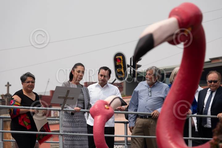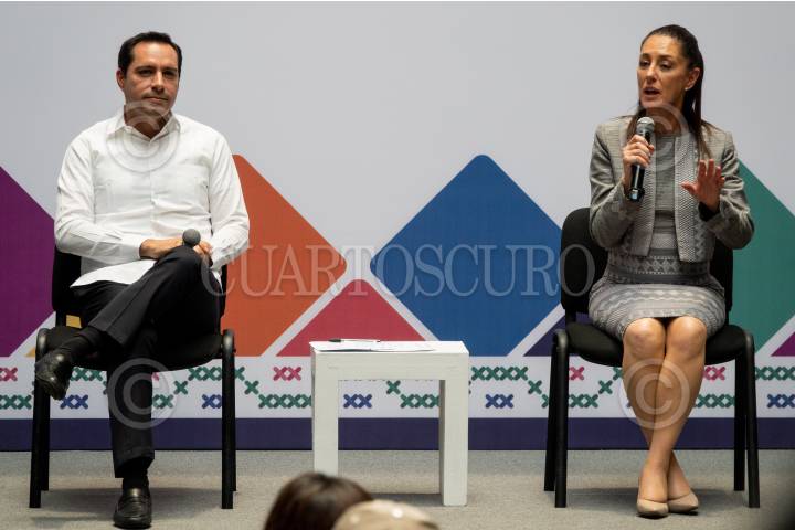Mauricio Vila y Claudia Sheinbaum durante la conferencia de prensa en el Antiguo Palacio del Ayuntamiento