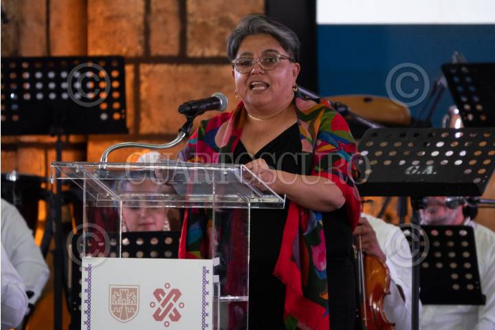 Raquel Buenrostro durante la inauguración de Yucatán Expone, muestras que reúne a más de 100 expositores del estado en el Zócalo capitalino.