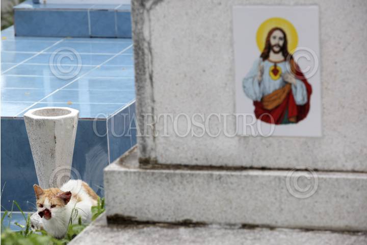 VERACRUZ, VERACRUZ., 19JUNIO2015.- Cerca de 150 gatos desaparecieron misteriosamente del Panteón Particular de Veracruz, lugar donde vivían después de ser abandonados por sus dueños. Protectoras de la organización "Corazón Gatuno", que se dedican a cuidar las colonias de felinos que habitan el panteón, calificaron como un exterminio los sucesos registrados durante las últimas semanas. FOTO: FÉLIX MÁRQUEZ / CUARTOSCURO.COM
