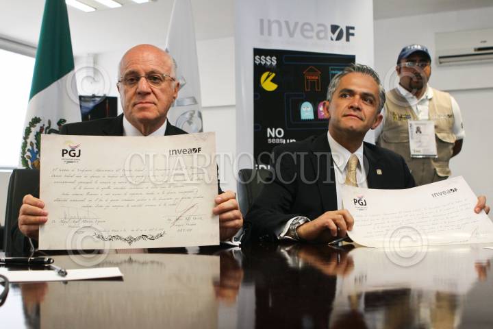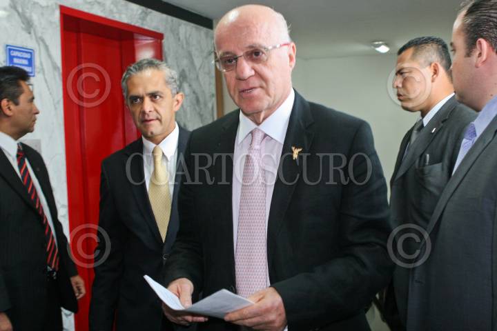 MÉXICO, D.F., 28AABRIL2011.- Meyer Klip Gervitz, titular del InveaDF, y el procurador capitalino Miguel Ángel Mancera presentaron la campaña en contra de extorsión denominada “¡Que no te muerdan!”, encaminada a frenar los presuntos intentos de extorsión que padecen propietarios de restaurantes, bares, discos y giros comerciales. FOTO: ISAAC ESQUIVEL/CUARTOSCURO.COM
