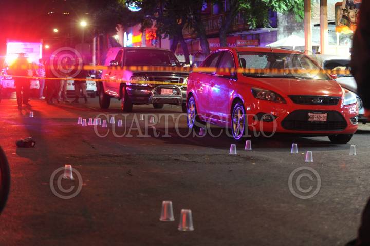 TLALNEPANTLA, ESTADO DE MÉXICO; 04JULIO2014.- Un hombre de aproximadamente 35 años, perdió la vida al recibir al menos 20 impactos de arma de fuego de diferentes calibres a bordo de un auto Focus, un joven más fue trasladado aun con vida a un Hospital cercano a la zona el cual recibió el impacto de una bala perdida. Los responsables huyeron del lugar a bordo de una camioneta Xtrail siendo detenidos calles más adelante. Estos hechos tuvieron lugar en la calle Morelos esquina con Aztecas de la colonia Centro Tlalnepantla. FOTO: LUIS CARBAYO /CUARTOSCURO.COM.