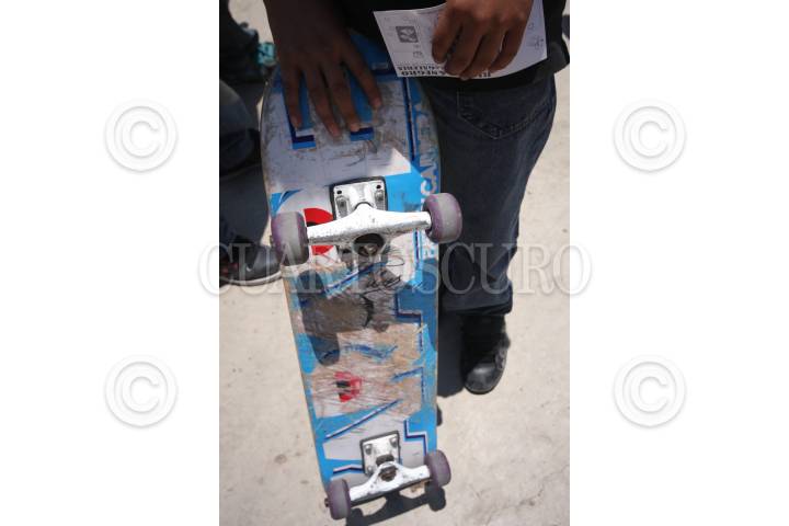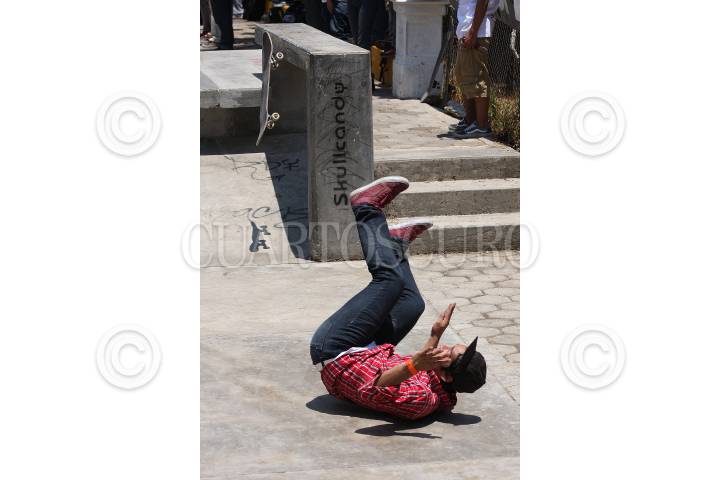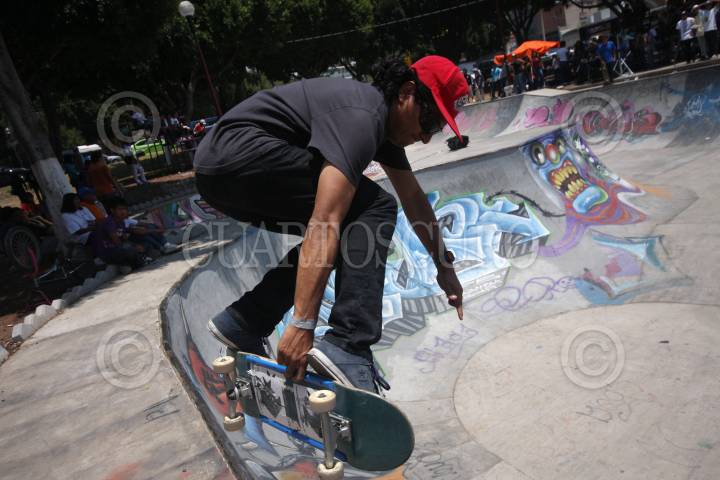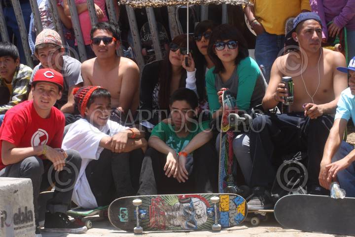PUEBLA, PUEBLA, 23ABRIL2011.- Cientos de jóvenes se dieron cita en el Skate Plaza Xonaca, en el que presenciaron la primera etapa del concurso nacional de Skaboarding Vans The Royal Side Stripe, en el que los participantes se lucieron con sus mejores acrobacias para disputarse un atractivo premio de cien mil pesos para los tres primeros lugares de las categorías avanzados e intermedios. FOTO: FRANCISCO GUASCO/CUARTOSCURO.COM