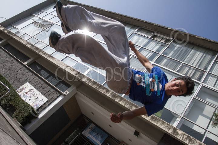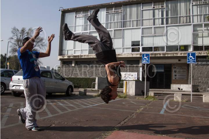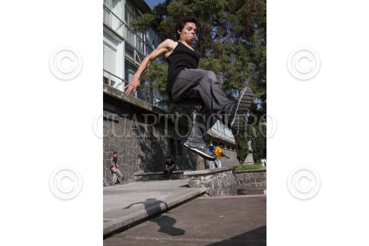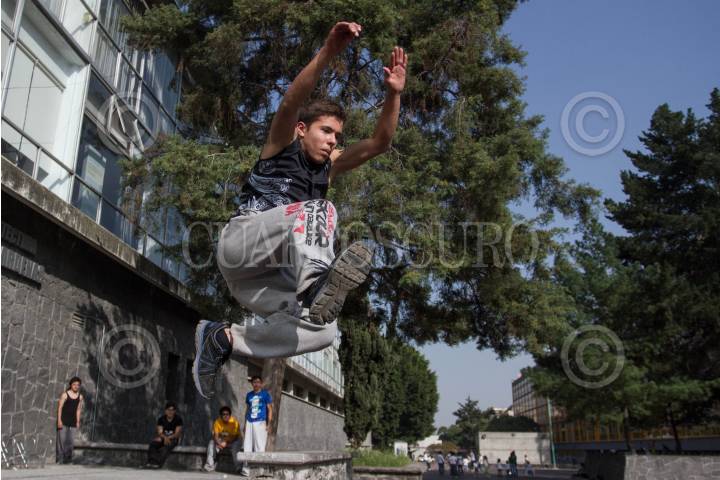 MÉXICO, D.F., 15DICIEMBRE 2013.- Jóvenes práctican el "Parkour", disciplina conocida como "el arte del desplazamiento", en Ciudad Universitaria. La disciplina, entendida como una filosofía de vida por los jóvenes, consiste en saber utilizar los espacios urbanos a favor del desplazamiento de las personas, a través de acrobacias y del conocimiento de las capacidades del propio cuerpo. FOTO: ISAAC ESQUIVEL / CUARTOSCURO.COM