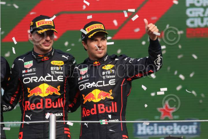 Max Verstappen y Sergio Checo Pérez del equipo Red Bull Racing hicieron el 1 y 3 de la Fórmula 1 del Gran Premio de la Ciudad de México 2022.