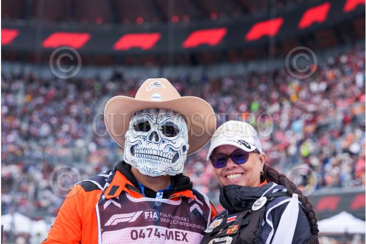 CIUDAD DE MÉXICO, 27OCTUBRE2024.- Auxiliares del Gran Premio de la Ciudad de México de la Fórmula 1 posan tras el desfile de pilotos en las inmediaciones del Autódromo Hermanos Rodríguez FOTO: GALO CAÑAS/CUARTOSCURO.COM