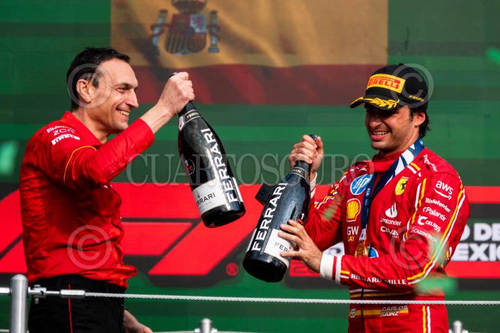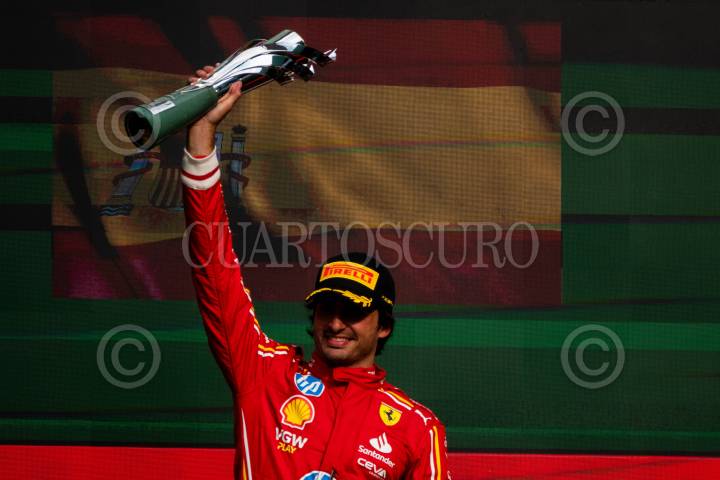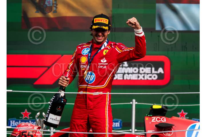 CIUDAD DE MÉXICO, 27OCTUBRE2024.- El piloto español Carlos Sainz (55) de la escudería Ferrari se coronó campeón del Gran Premio de la Ciudad de México de la Fórmula 1 en el Autódromo Hermanos Rodríguez. FOTO: GALO CAÑAS/CUARTOSCURO.COM