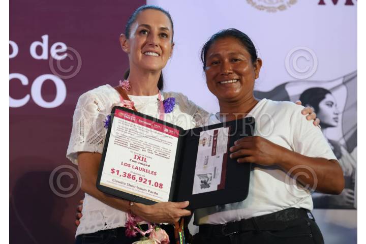 CHAMPOTÓN, CAMPECHE, 21JUNIO2025.- Claudia Sheinbaum Pardo, presidenta de México, presidió la entrega del Faispiam, presupuesto directo para pueblos indígenas y afromexicanos. FOTO: PRESIDENCIA/CUARTOSCURO. COM