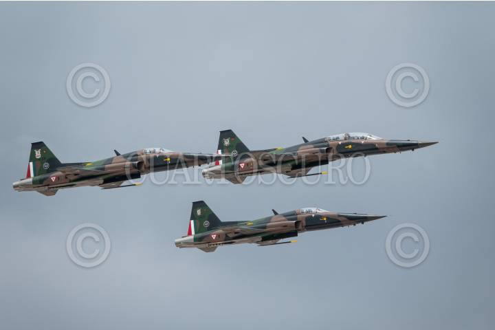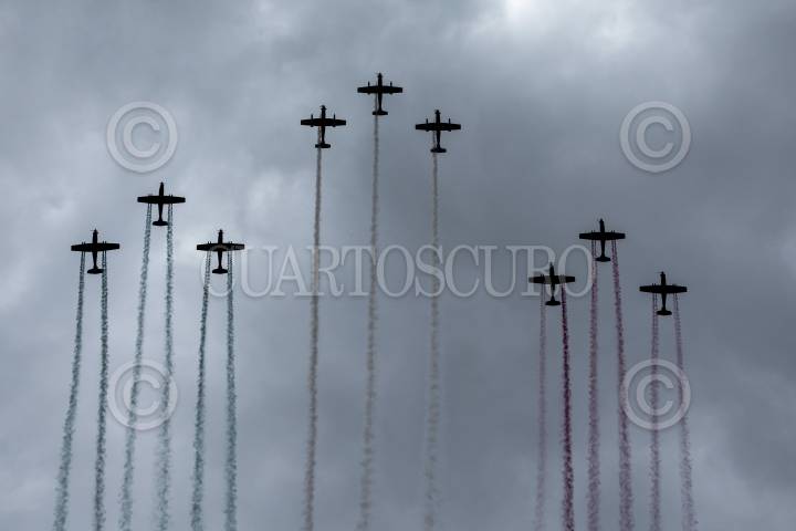 Distintas aeronaves son expuestas sobre una de las pistas de la base militar como parte del Famex 2023.