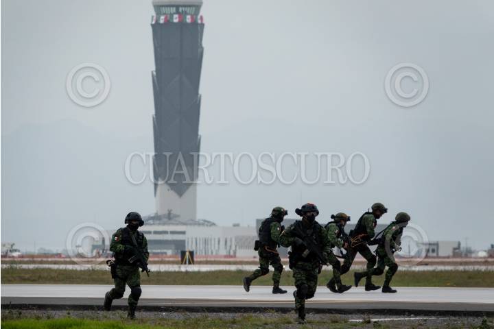 ZUMPANGO, ESTADO DE MÉXICO, 22ABRILO2025.- Ricardo Trevilla, secretario de la Defensa Nacional, y Claudia Sheinbaum, presidenta de México, encabezó la inauguración de la Feria Aeroespacial Mexicana (FAMEX) 2025 en las inmediaciones de la Base Aérea de Santa Lucía. FOTO: GALO CAÑAS/CUARTOSCURO.COM